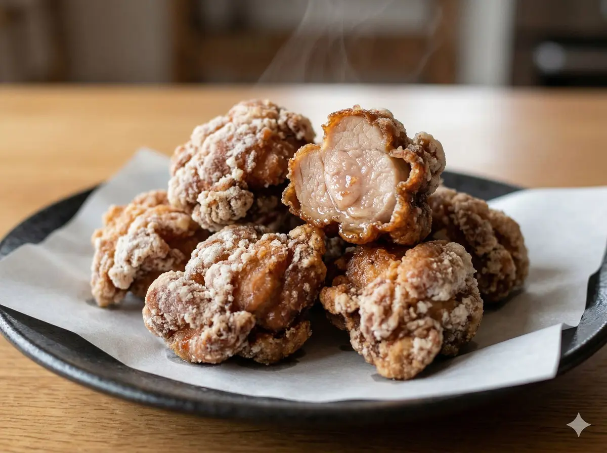 - 1The crust is lighter and more delicate than karaage — handle with care, it crumbles easily.