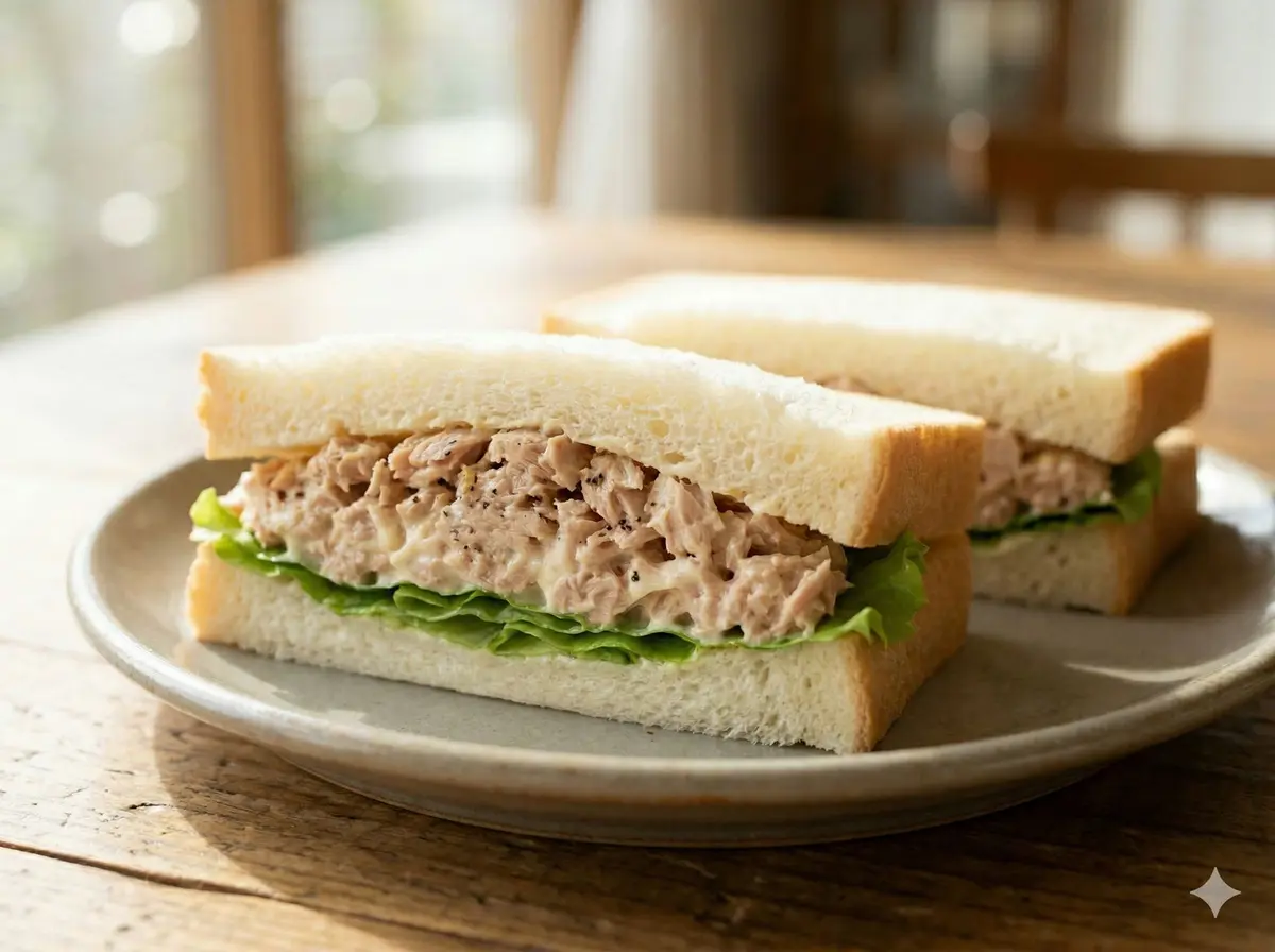 “Flaky tuna, creamy mayo, cloud-soft bread — a staple for good reason.”